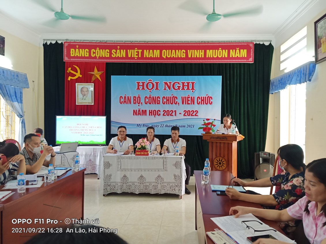 Hội nghị cán bộ, công chức, viên chức trường Tiểu học Mỹ Đức 1 năm học 2021- 2022 được tiến hành vào hồi 13 giờ 30 phút ngày 22/ 9 /2021 tại trường Tiểu học Mỹ Đức 1.