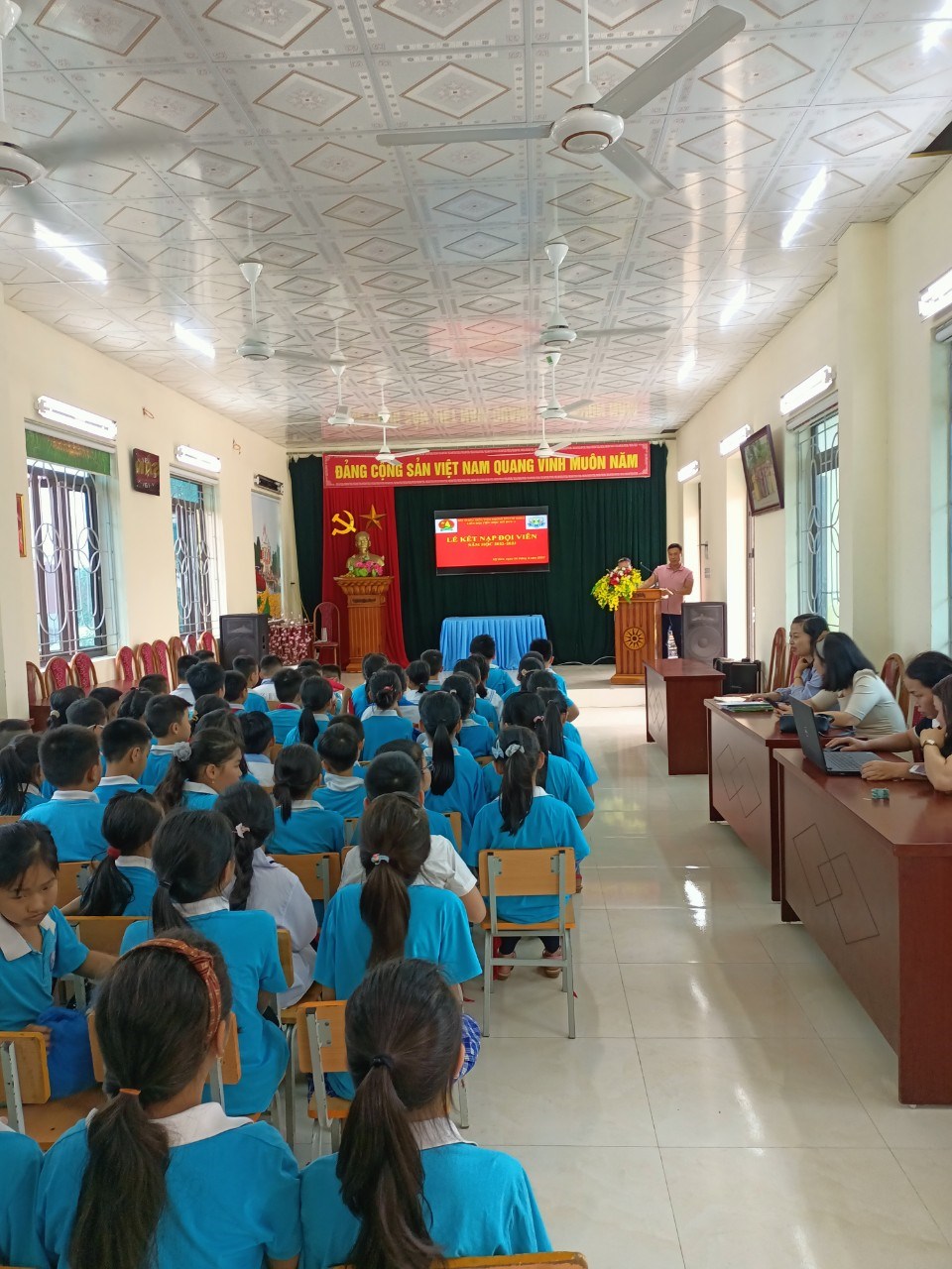 Dưới sự điều hành của Ban chỉ huy Liên đội, buổi lễ kết nạp đội viên mới diễn ra theo đúng nghi lễ, thể thức của Đội. Tất cả 76 bạn học sinh tiêu biểu chính thức được thầy giáo Hiệu trưởng, thầy Tổng phụ trách đội trao và đặt những chiếc khăn quàng đỏ – một phần của lá cờ tổ quốc, niềm tự hào về đội viên TNTP Hồ Chí Minh, tự hào về tổ quốc lên vai.