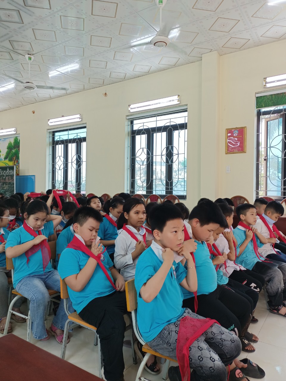 Đứng trước cờ tổ quốc, cờ đội, chân dung của Bác Hồ kính yêu các bạn đội viên mới đã cùng nhau hô vang lời hứa của người đội viên khi vinh dự được đứng vào hàng ngũ của Đội thiếu niên Tiền phong Hồ Chí Minh, đồng thời các bạn đội viên mới được tự tay mình thắt khăn quàng trên vai theo đúng nghi thức của Đội.
