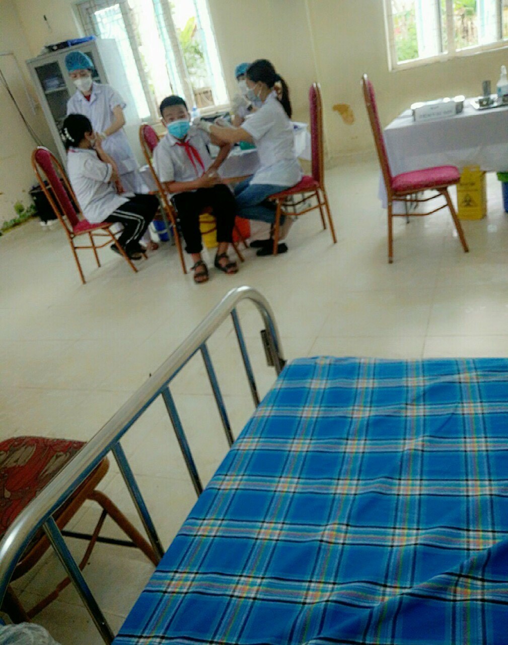 Bên cạnh đó trung tâm y tế huyện đã bố trí điểm cấp cứu tại trường tạo cho phụ huynh và học sinh yên tâm hơn khi được tiêm vắc xin.