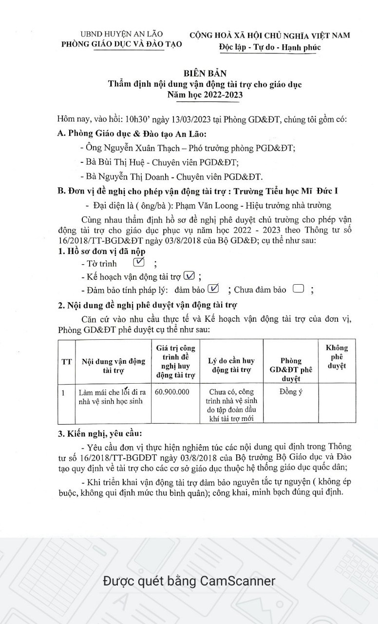 Biên bản thẩm định nội dung Vận động tài trợ cho giáo dục Năm học 2022-2023